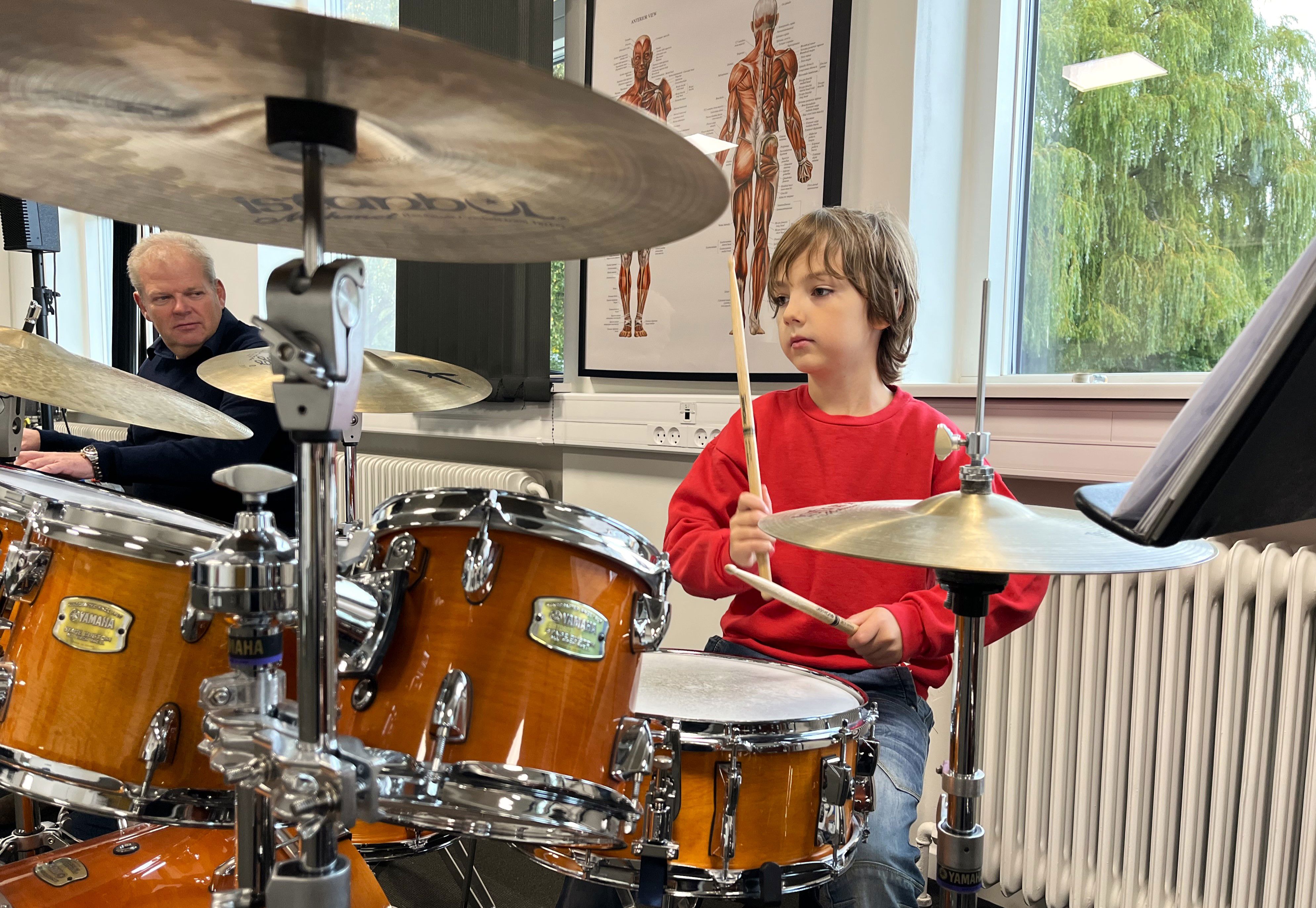 I den udstrækning Musikskolen har trommesæt og xylofoner til det, kan du låne en disse med hjem.